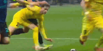 第44分钟,巴雷拉禁区右侧突破,在卡斯帕-霍放铲的情况下痛苦倒地,但裁判示意后者铲到球。
